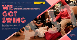 SOIREE WE GOT SWING 14 MARS // BATTLE AJT Billetterie sur notre site internet du lundi 23 février 12h au vendredi 13 mars 20h. 📢 Attention : nombre de places au tarif de 16€ limité – une fois les places à 16€ épuisées, le tarif de 18€ sera accessible sur la billetterie en ligne
